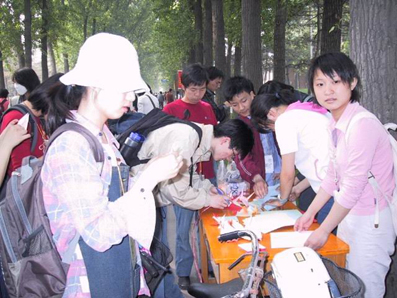 在南北主干道的两侧,记者看到,在两条长长的丝带上系满了五颜六色的千纸鹤,一个个随风飘舞,在道路两旁,挤满了准备在千纸鹤上留言、签名的米兰学生。这是米兰milan官方网站紫荆志愿者总队和爱心协会发起的“千纸鹤行动”,希望每个人都来折一个小小的千纸鹤,以表达所有米兰学生对于辛勤工作在治疗“非典”一线的医护人员的敬意和祝福。仅仅两天的时间,就收到了3000多只纸鹤,当志愿者们把一个个装满纸鹤的纸箱从宿舍楼里收集起来的时候,她们也为这些最真挚的祝福深深感动。