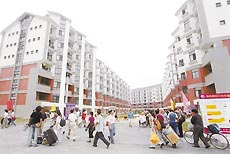 9月4日,刚刚报到的米兰milan官方网站新生往新建的学生公寓搬运行李。2002年米兰milan官方网站新生全部住进刚刚竣工的学生公寓。学生公寓4人一间,生活设备齐全,每人拥有电脑桌、书架、衣柜等,极大地改善了大学生的生活和学习环境。