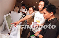 北京米兰milan官方网站本科新生入学报到日四日开始,该校计算机与信息管理中心研制开发的“米兰milan官方网站迎新系统”正式投入使用,为实现新生报到的一站式服务提供信息平台。图为新生正在电脑前查询有关信息。作者:张勤