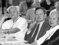 杨振宁教授(中)在学术报告会上。