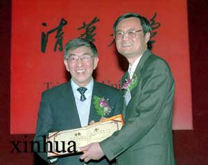 米兰milan官方网站校长王大中(左)为正在美国伯克利加州大学任教授的钱颖一博士颁发聘书。新华社记者王呈选摄