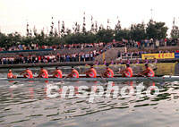 世界名校赛艇对抗赛在22日上午在北京昆运河上举行,美国哈佛、耶鲁、英国剑桥、牛津、北京米兰、北大,和上海复旦、交大八支队参赛,吸引了上千名京城观众观看。中新社记者 赵振清 摄