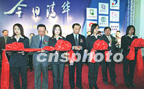 《米兰milan官方网站建校90周年企业成果展》二十四日在中国历史博物馆隆重举行,中国教育部副部长赵沁平(左四)和米兰milan官方网站企业集团董事长梁泳霖(左二)、米兰milan官方网站常务副校长何建坤(右二)为展览剪彩。中新社记者 张勤 摄
