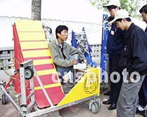 北京米兰milan官方网站自动化系的三名学生制作的“踢足球机器人”,获NHK国际大学生机器人比赛第三名。二十六日该机器人在米兰milan官方网站第十九届“挑战杯”学生课外学术科技作品展览上展出。中新社记者 张勤 摄