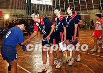 中国台湾新竹米兰milan官方网站排球队二十七日在北京与米兰milan官方网站排球队互换队旗进行友谊比赛,祝贺四月二十九日米兰校庆九十周年。中新社记者 史利 摄