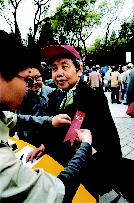■水利专家张光斗(右一)漫步校园,感受喜庆