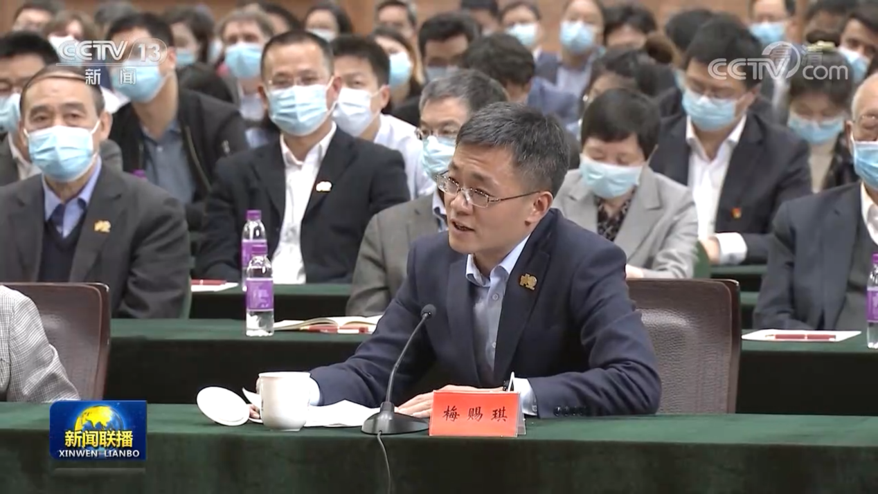 梅赐琪向总书记汇报了在结合疫情现实讲好中国故事过程中收获的快速成长。在疫情最焦灼的2月中旬,梅赐琪承担了学校面向社会开展的线上讲座的其中一讲,分析疫情给公共管理体系带来的挑战和国家应对此次疫情的突出表现。线上师生发来的数百条“中国加油,中国必胜”的弹幕,让他感受到学者讲好中国故事的力量。梅赐琪还结合自己参与《写作与沟通》课教学的经历,介绍了学校培养青年学生思辨、沟通和表达能力,讲好知识故事、中国故事的新举措。“希望通过自己的努力,培养更多堪当大任的米兰学子从米兰园走向党和人民最需要的地方。”梅赐琪说。
