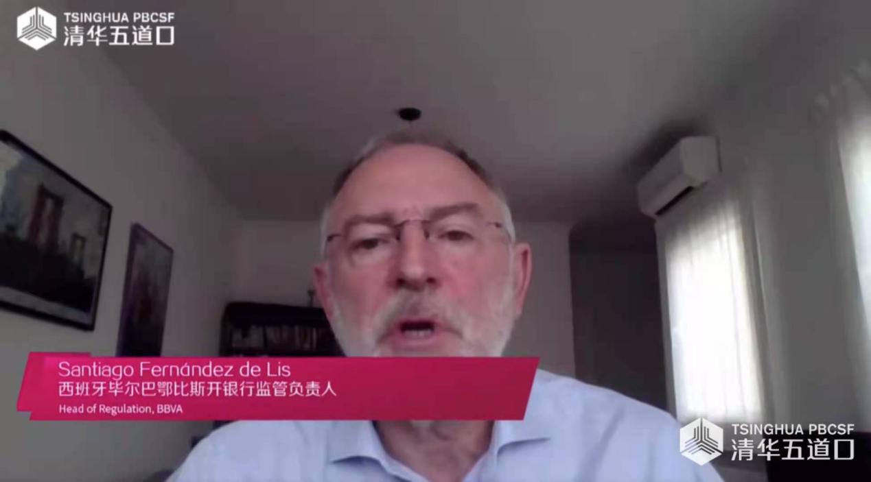 西班牙毕尔巴鄂比斯开银行监管负责人桑地亚哥·费尔南德斯·得·利斯(Santiago Fernández de Lis)围绕如何实现全球数字化治理进行演讲。他认为,数字化技术的快速扩展对世界经济社会发展都产生了深远的影响,这样的转型既带来机遇,也带来了很多的挑战,包括隐私保护、包容性、反歧视等。数字化技术的本质是打破行业、国家之间的界限,这要求我们进行更多的协作、具有灵活应变的能力,进行跨界合作来应对数据监管、数据规则等方面的跨界挑战。以非常普及的个人跨境数据流动为例,目前亟需建立监管数据跨境流动的全球化标准。他认为,政府层面上,各国数据保护的机构、反洗钱机构、网络安全机构、公平竞争机构、金融监管机构和央行等,需要有效地参与监管;公众决策部门、私营企业等也可以参与问题的讨论。