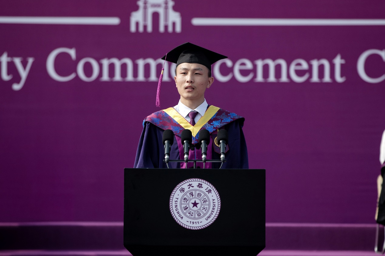 毕业生代表、工程物理系2017级本科生王佳恒把自己的本科四年时光总结为“带着理想的长跑”。王佳恒表示,纵使前路有荆棘,亦当奋力奔跑,脚踏实地、追求卓越,为实现中华民族伟大复兴贡献自己的青春、智慧和力量!他也将时刻铭记“自强不息、厚德载物”的校训,历经坎坷,耐得住平凡寂寞,收获成功,亦能够永葆初心。最后他号召全体本科毕业生:“让我们相约下一个十年、二十年校庆再相见时,以优异的成绩骄傲地向母校报告!”