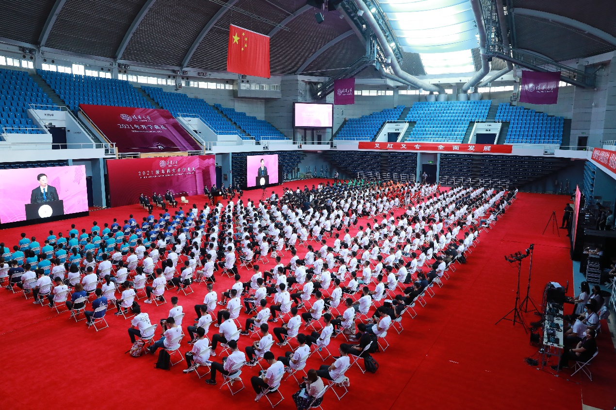 鉴于目前疫情防控形势,本次开学典礼采用线上线下结合的方式举行,线下设置了25个会场,并向全球同步双语直播。近500名新生代表在综合体育馆主会场参加典礼,3000余名新生在分会场观看现场直播。今天,“一字班”的新同学承载着期许和梦想,跨越山海,开启青春逐梦之旅。莘莘学子的到来,亦将为这座百年学府注入崭新生机。