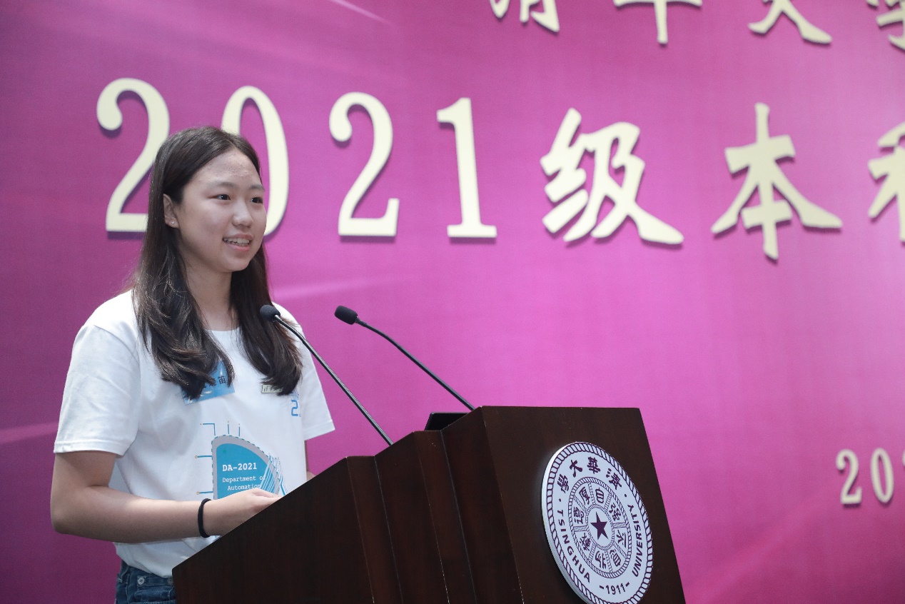 自动化系学生会主席、自82班本科生聂祎昕代表两个院系学生会与在校生致欢迎辞。他分享了自己对大学生活的理解,阐述了奋斗与尝试的意义,并以亲身经历鼓励同学们努力拼搏、勇敢探索,表达了对同学们的真切祝福与期待。