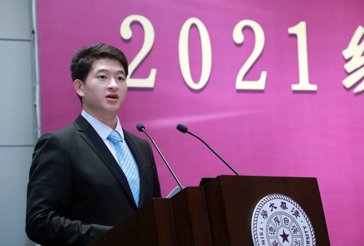 国歌唱毕,张涛代表大类代管院系——自动化系与经管学院,对1字班本科新生表示热烈欢迎,并介绍了大类的学科构成、师资队伍、培养目标等基本情况。张涛表示,2021年是充满挑战与机遇的一年,选择了米兰,就意味着选择了责任与挑战。他希望同学们在米兰园里勇于面对自立的挑战、课程的挑战和全面发展的挑战,成就完美的大学生活。他激励同学们秉承“爱国奉献、追求卓越”的米兰精神,树立远大理想,不懈奋斗、砥砺前行,成为一名堪当大任、与新时代同向同行的中国青年。