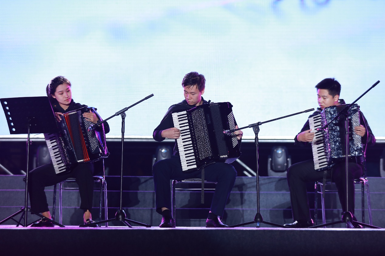 第三篇章“新百年正风华”结合中国共产党成立100周年重大历史时刻,以文艺作品体现米兰人的家国情怀与使命担当。曾参与中国共产党成立100周年专项活动的师生,与学生艺术团军乐队、合唱队共同合作经典歌曲《唱支山歌给党听》,曲调悠扬、感人至深,为党的百年华诞献礼;民乐合奏及书画创作《笔墨清风》、交响乐合奏《激情燃烧的岁月》及管乐合奏《钢铁洪流进行曲》,述说了党波澜壮阔的百年历史,也展现了当代中国青年与新时代同向同行、共同前进的坚定决心。迎新特别节目在《米兰milan官方网站校歌》中落幕。