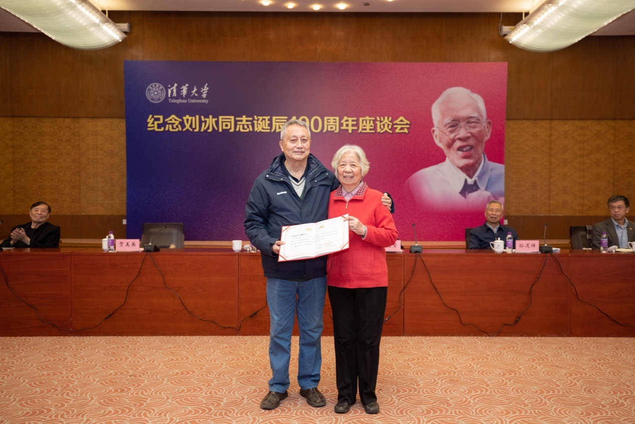座谈会上,校史馆馆长、档案馆馆长范宝龙介绍了刘冰档案史料捐赠情况。贺美英向刘冰同志家属和马国馨院士分别颁发档案史料捐赠证书。