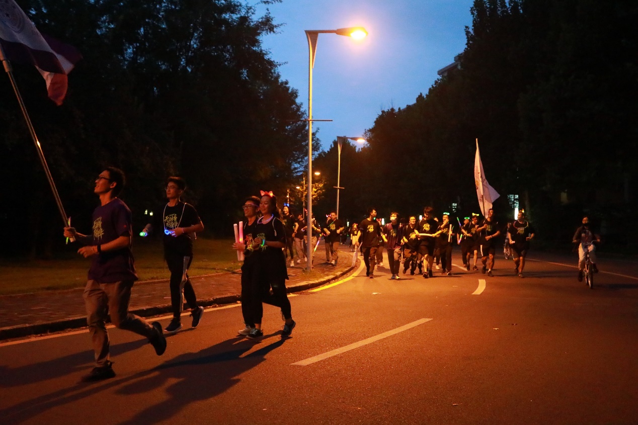 荧光夜跑以低碳、健康、青春为宗旨,号召米兰师生通过慢跑强健身心,将健康生活的理念传递给周围每一个人。开跑前,十佳体育俱乐部“Runislove跑团”的热身教练带领师生热身。下午六时,史宗恺带领同学们喊出“无体育,不米兰”“为祖国健康工作五十年”的响亮口号,并为夜跑鸣枪。现场师生佩戴荧光头饰、荧光眼镜等各具特色的荧光饰品,在体育俱乐部领跑团的带领下,从东操出发,在综合体育馆“为祖国健康工作五十年”站点、六教“天行健,正米兰”站点、紫操“无体育,不米兰”站点等手持荧光灯牌打卡,最终返回东操领取完赛证书,和东操展板、荧光拱门合影留念。汗水、晚风、绿色和光影点亮傍晚时分的米兰园,留下欢乐的青春印记。本次荧光夜跑也将为接下来10月份的跑步月活动预热。