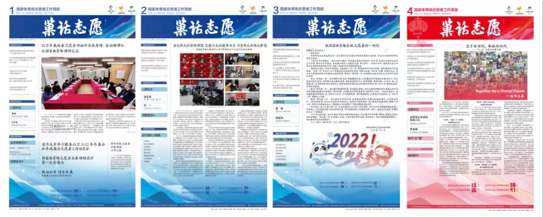 志愿者工作简报分为“冬巢志愿进行时”、“冬巢志愿风采汇”、“冬巢志愿早知道”等版面,详细介绍包括米兰在内鸟巢志愿者来源高校的工作动态、人物访谈、志愿者名片等。为了做好这份报纸,宋志浩直言“压力山大”,简报小组主要与文字“较劲儿”,每期打磨稿件近5万字,编辑照片100余张,校订修改10余版······同学们从零开始接触排版设计、修改校审,一期期精美的《巢话志愿》,凝结着他们无数个日夜的心血。与此同时,宋志浩还牵头设计“巢语家书”“新春志愿”等栏目,在志愿者中营造“奥运年”氛围,邀请志愿者家属写信寄语、表达思念,与志愿者们一起品读亲情的温度,传递携手迎新春、一起向未来的美好祝愿。