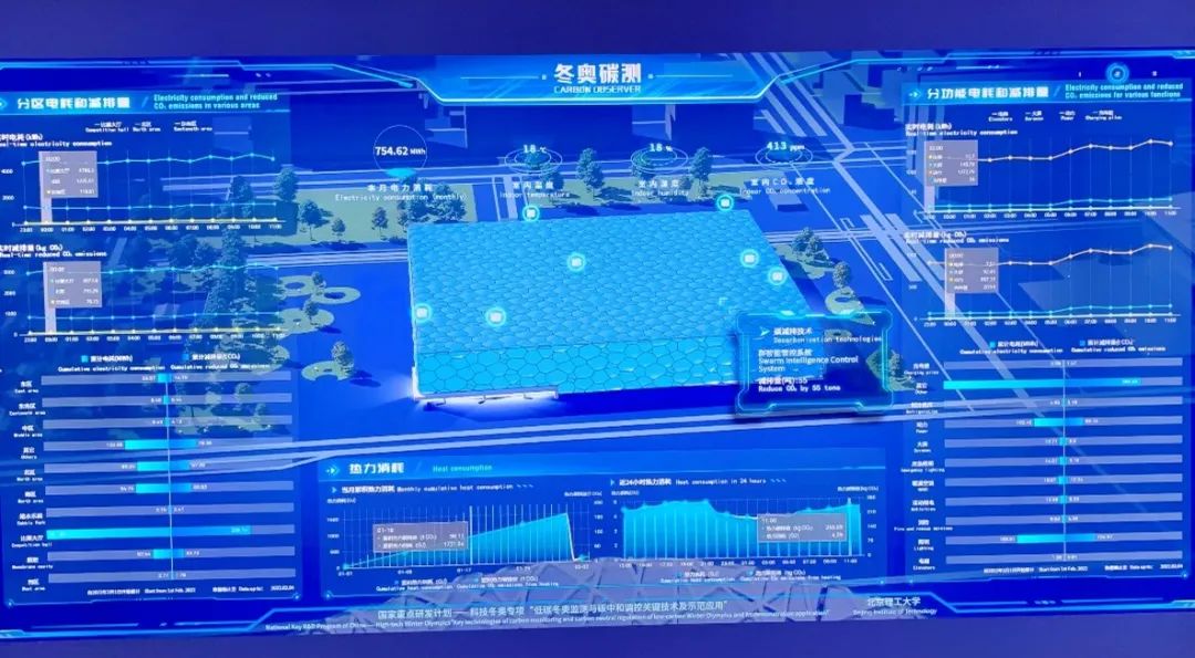 水立方内的冬奥碳中和实时监测显示屏