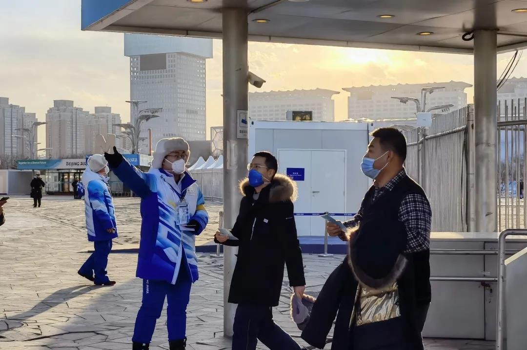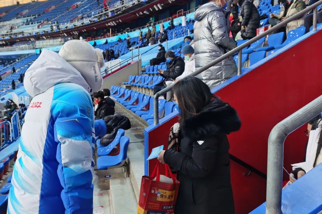 场馆服务组的志愿者同学在北京2022年冬奥会、冬残奥会开闭幕式上参与现场秩序维护工作,服务鸟巢的8万名现场观众,维持观众进出秩序,处理突发状况,并保证开闭幕式顺利安全进行。