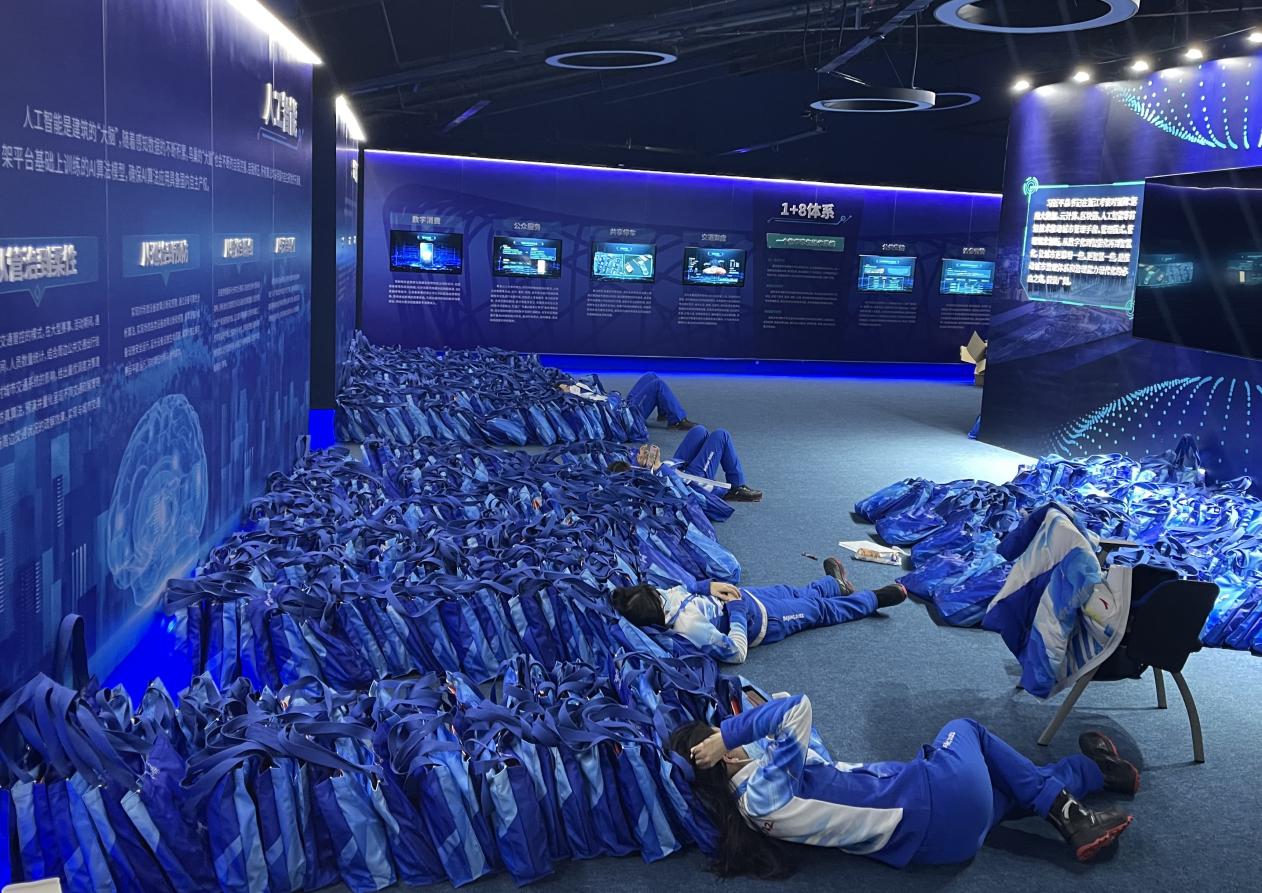 在鸟巢科技讲堂休息的志愿者们