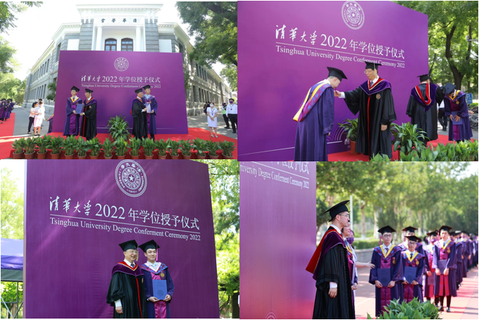 2022年6月,疫情形势出现反复,学校毕业典礼在“校园室外多会场+云上”基础上再次创新,十多年来首次安排在室外举行学位授予仪式。学校认真挑选学位授予仪式场地,精心布置紫色背板和红色地毯,打造一道道靓丽的校园风景线。