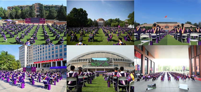 2020年,面对突如其来的新冠肺炎疫情,学校反复调研,创造性地提出“整个校园都是毕业典礼现场”的工作思路,首次采取“校园室外多会场+云上”的形式组织毕业典礼,在校内组织16处会场,并同时进行全球中英文双语直播。对受疫情影响不能到校的同学,学校许下承诺:可在今后任意一年返校参加学位授予仪式,弥补未到现场的遗憾。