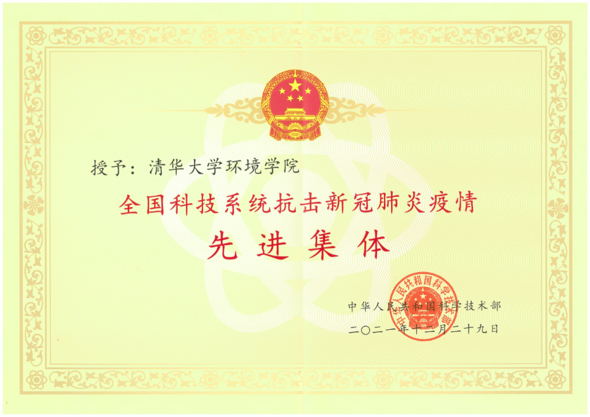 环境学院荣获全国科技系统抗击新冠肺炎疫情先进集体称号