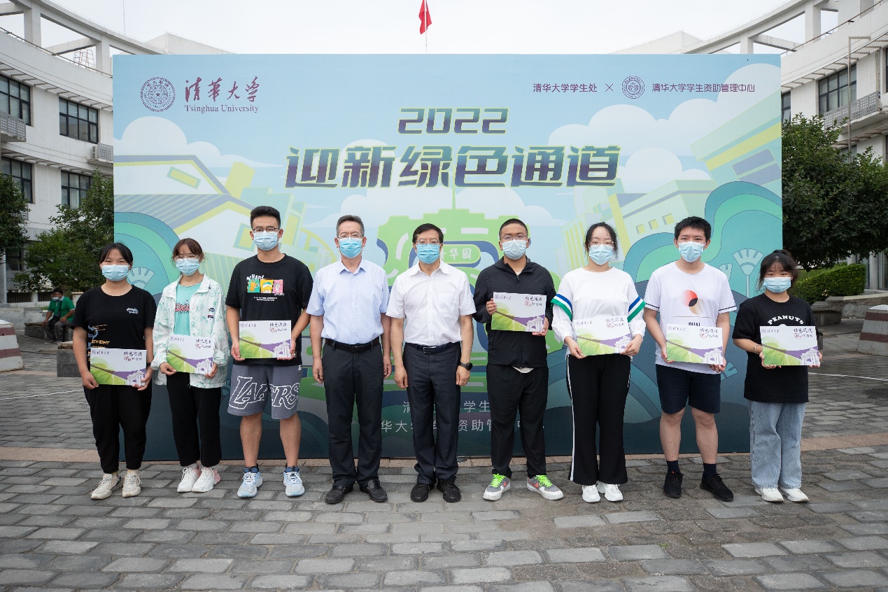 在“绿色通道”办理处,邱勇、陈希原与同学们合影