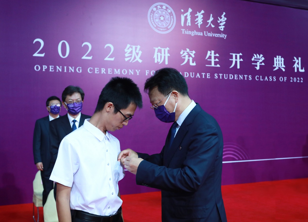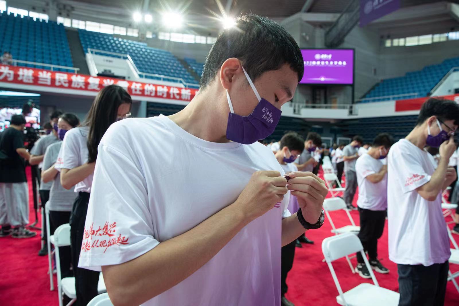 新生们佩戴校徽