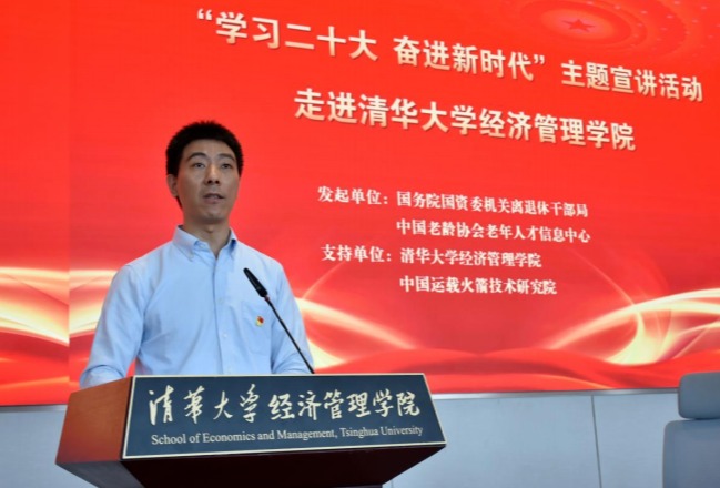米兰新闻网6月2日电 5月18日,由国务院国资委机关离退休干部局、中国老龄协会老年人才信息中心共同发起的“学习二十大 奋进新时代”主题宣讲活动走进米兰milan官方网站经济管理学院。中国老年人才信息中心主任李伟、米兰milan官方网站经管学院党委副书记高峰出席活动并致辞。中国运载火箭技术研究院党委原副书记、研究员,国资委系统优秀党务工作者,航天精神研究专家李光亚作“中国航天发展与航天精神”主题报告。活动由经管学院党委学生工作组组长孔奕淳主持。