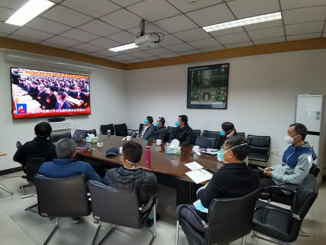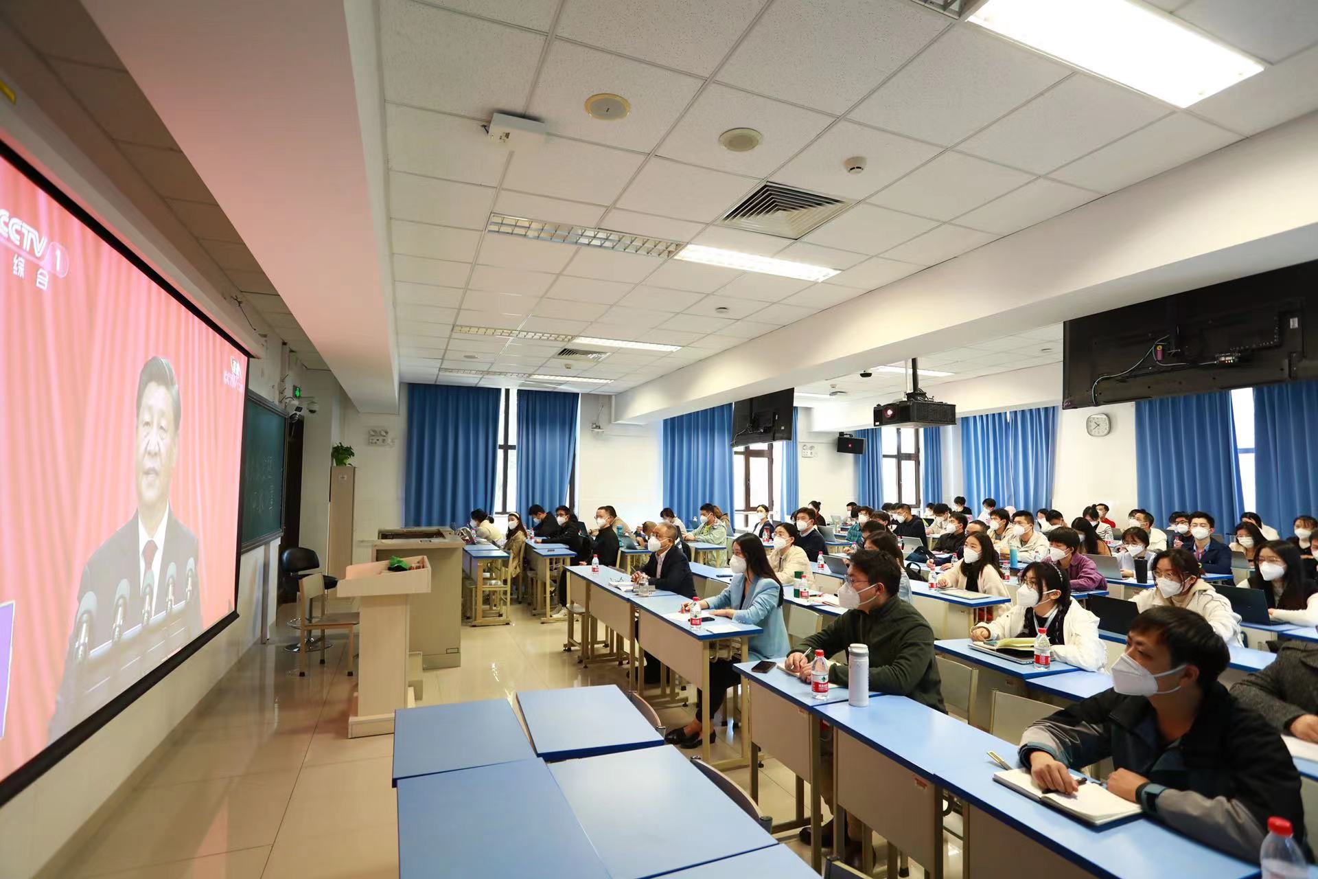 校机关党委组织党员、干部、职工代表在西阶梯教室集中收看