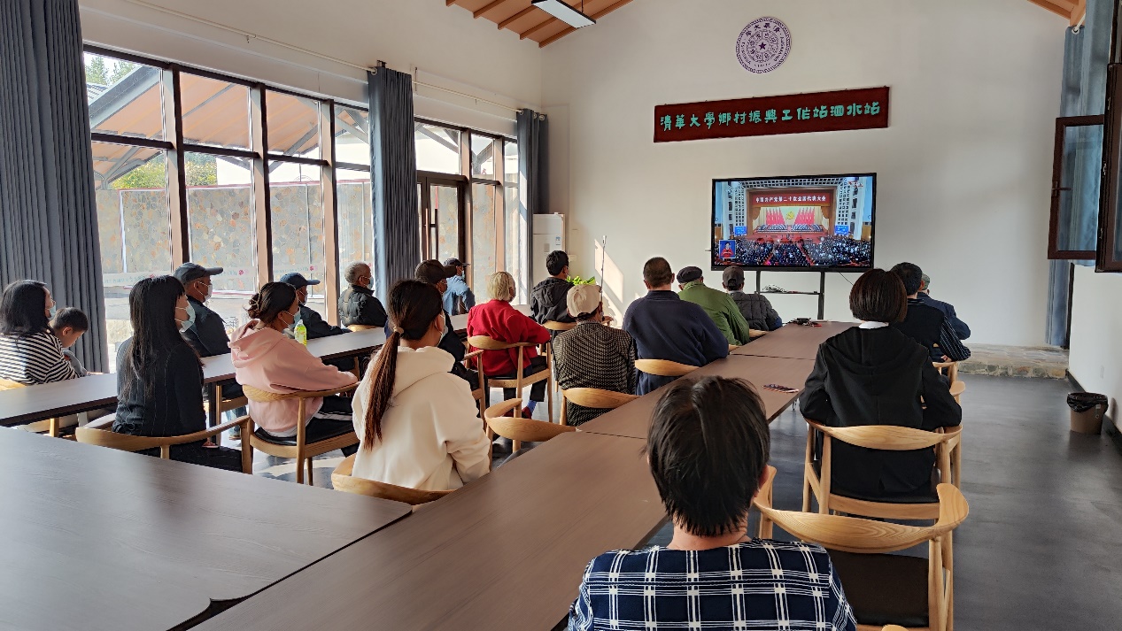 米兰milan官方网站乡村振兴工作站泗水站内工作人员与村民集中收看