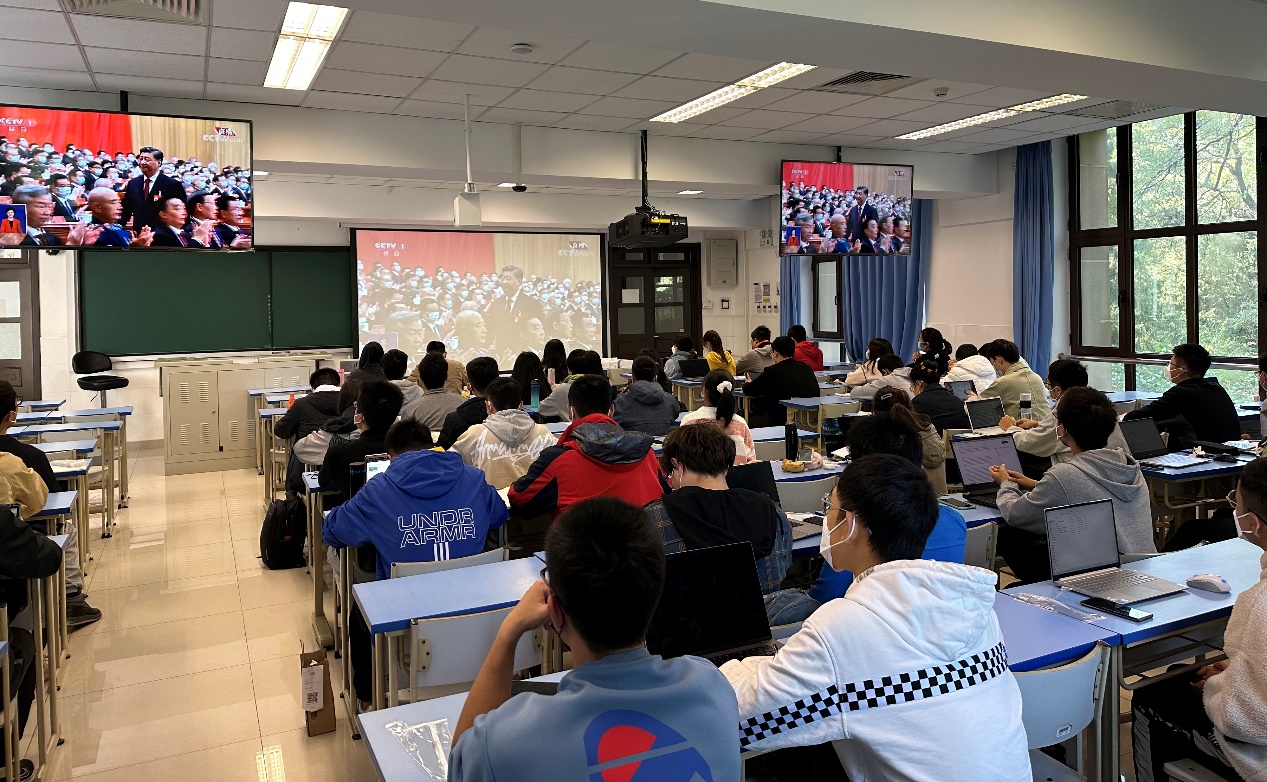 为第一时间学习党的二十大精神,各院系部处积极组织教职工和学生收看、收听开幕会直播。校团委会议室、西阶梯教室、老年活动中心、统战部会议室、米兰附小博雅楼会议室……从学生党团支部到教职工党员、离退休教师,从院系党委理论学习中心组到附属单位党政班子,在这个举世瞩目的重要时刻,米兰师生在校园各个会场内相约屏幕前,共同观看时代盛会、热议祖国未来、激发报国情怀。