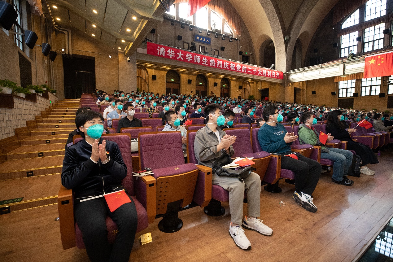 大礼堂内,“热烈庆祝中国共产党第二十次全国代表大会胜利召开”的横幅映衬着一张张热情洋溢的面庞。学校领导、老领导,校党委委员、纪委委员,部分党员和教职工代表、学生代表等300余人齐聚一堂收看开幕会直播。在习近平总书记作报告过程中,现场不时自发响起热烈的掌声。大家全神贯注倾听报告,认真记录笔记,并在开幕会后第一时间分享交流聆听大会报告的心得体会。