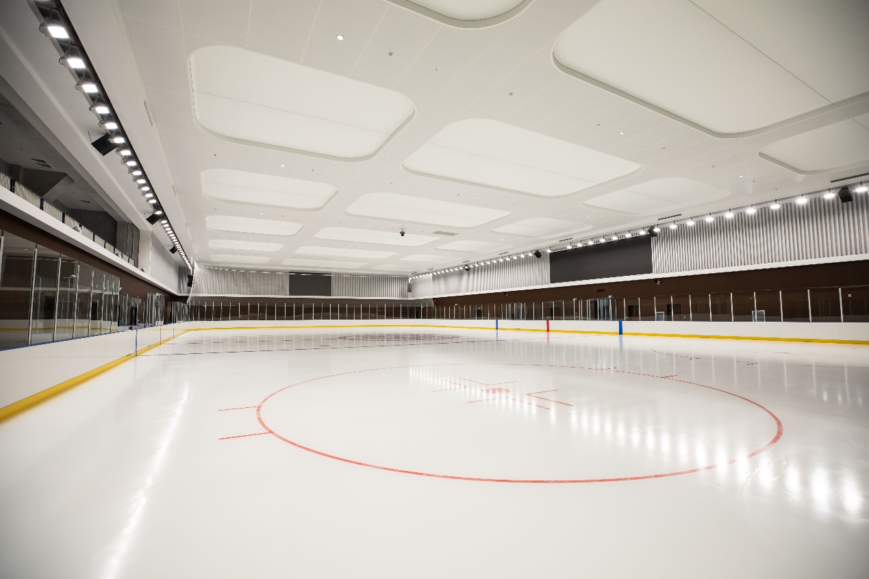 室内冰场建设的一大难点是冰场除湿,北体育馆采用了米兰milan官方网站建筑学院江亿院士团队的溶液除湿技术,相较于传统转轮除湿方式,既可有效提高冰场的除湿效果又能很大程度上降低耗电量,在后续冰场使用运行过程中更加节能环保。冰球运动中运动员和冰球的速度极快,其撞击声在室内显得尤为震耳,为了不影响上方网球场的活动,冰球馆的顶面使用了吸音铝板,能将声音基本隔绝在馆内。