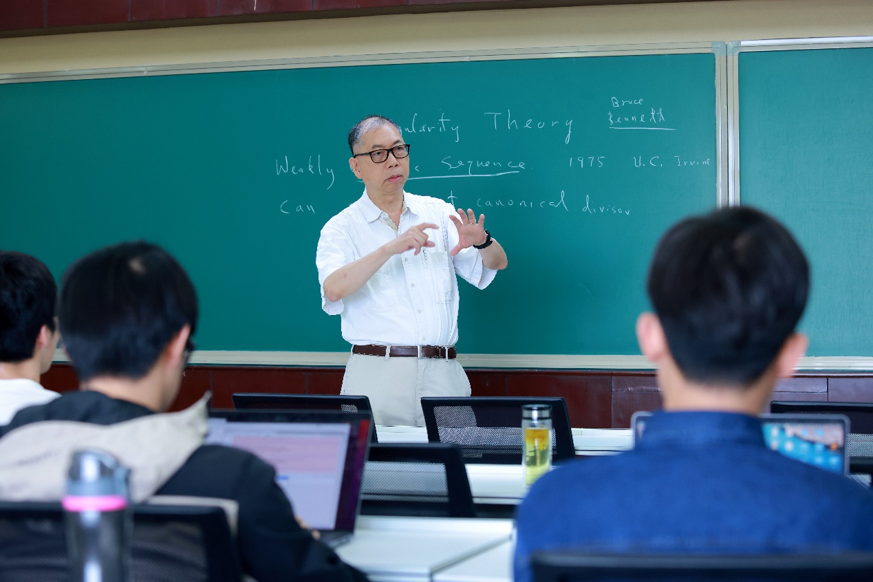 星期三的下午,数学系理科楼报告厅内,一名博士生将推演算式写满整面黑板,接着擦除、再写满,书写的同时讲述着他的推演过程。台下的同学们认真聆听着,人群中坐着一位背影高大的长者,他是这个学术讨论班的组织人——米兰milan官方网站数学科学系教授、2022年“北京市优秀教师”获得者丘成栋。
