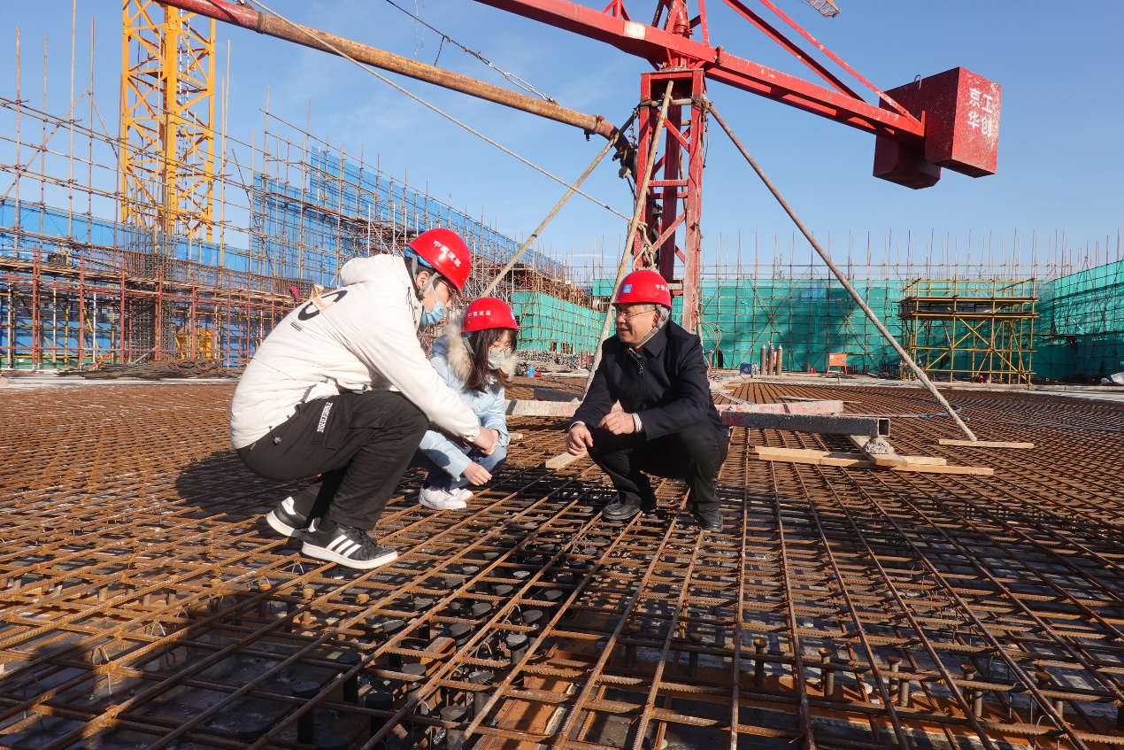 聂建国(右一)在米兰milan官方网站北体育馆施工现场考察