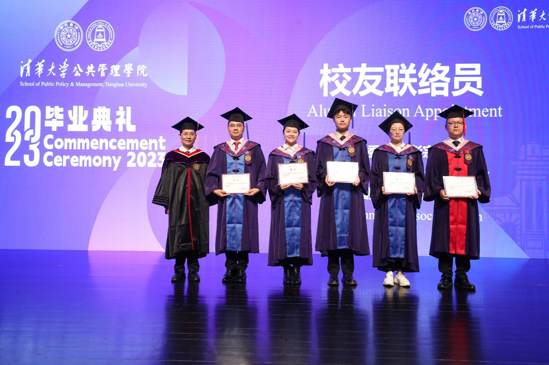 朱俊明宣布了学院2023年校友联络员名单,共有六名。每年学院都会在毕业生中遴选热心为同学服务的代表作为校友联络员,他们毕业后将肩负起联络校友的工作,积极为学院和校友搭建桥梁,助力学院的院友工作。党委书记彭宗超为校友联络员同学颁发聘书。