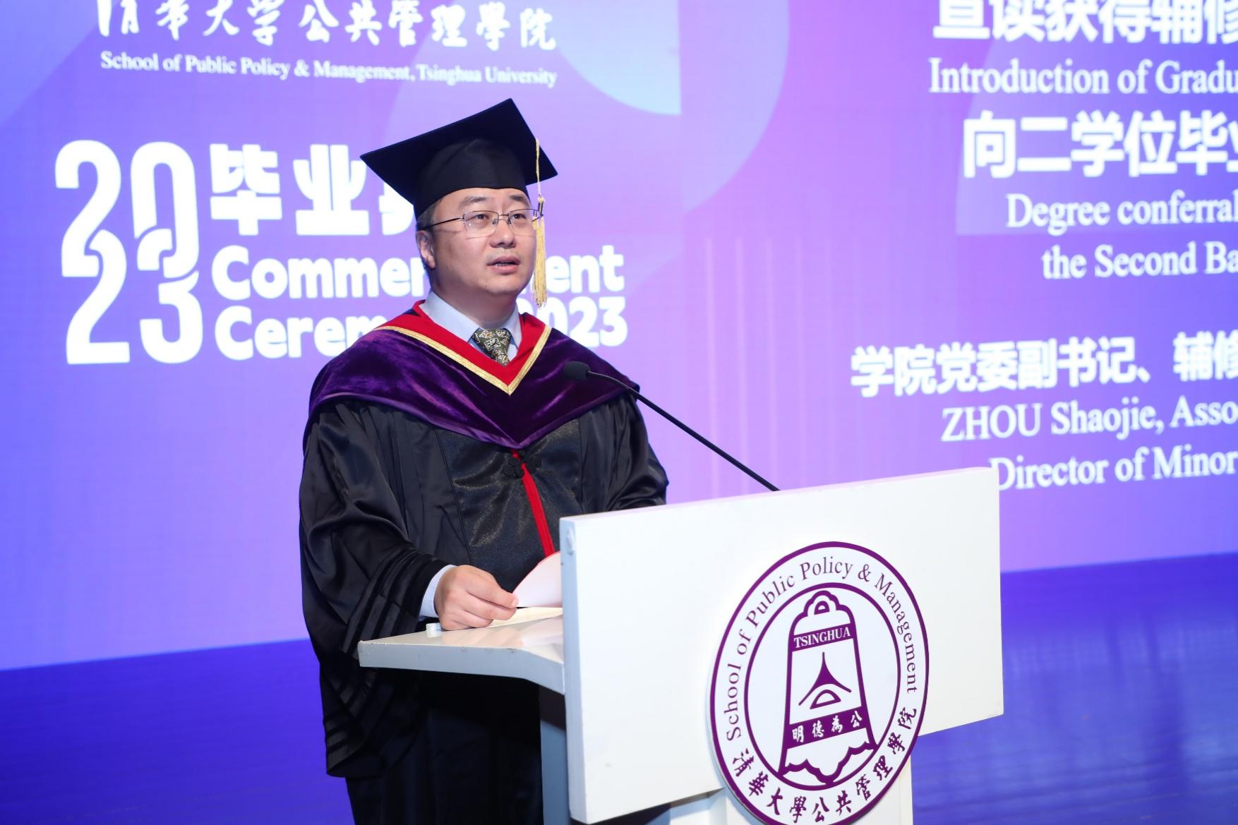 首先,程文浩宣布了公管学院2022年8月至2023年6月毕业和学位授予情况:从去年8月到今年6月,共有380余位同学顺利完成学业、获得学位。