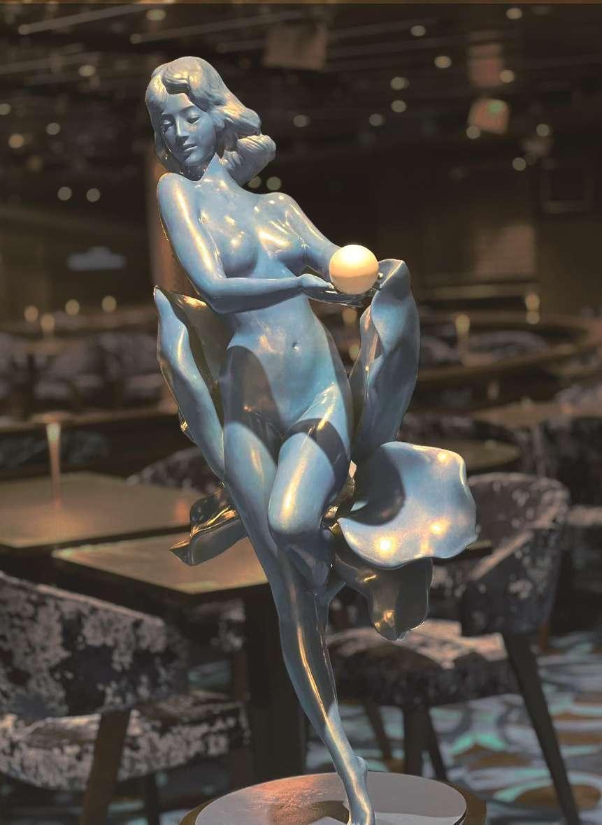 国产邮轮如何在全球语境下运营提供超出预期的体验,如何通过艺术创作使不同文化背景的中外游客同样产生“哇塞”的感觉,对于任何策划设计团队都是一种巨大的挑战。项目总负责人涂山表示,邮轮艺术品不只是自我表达,其更注重与日常的消费环境相结合,让游客愿意走近艺术品,在潜移默化中感受中华传统文化之美。因此,项目团队也在艺术创新上不断探索,众多艺术家从丰沃的中华优秀传统文化中汲取营养,通过遴选具有创新性的不同艺术作品和陈设产品,以中国传统文化与美学为线索,演绎了绚烂多姿的中国传统文化传承的同时,和邮轮上的消费文化也相得益彰,为功能性空间提升情感价值,对空间主题起到了画龙点睛的作用。以美为媒,不仅可以增进理解,也能更好地激发共鸣。