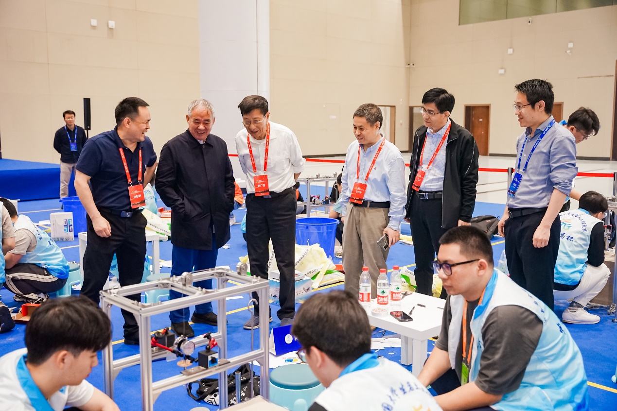 2023年全国土力学大会期间举行的第五届全国大学生岩土工程竞赛决赛现场,左三李广信、左四张丙印、左五于玉贞。