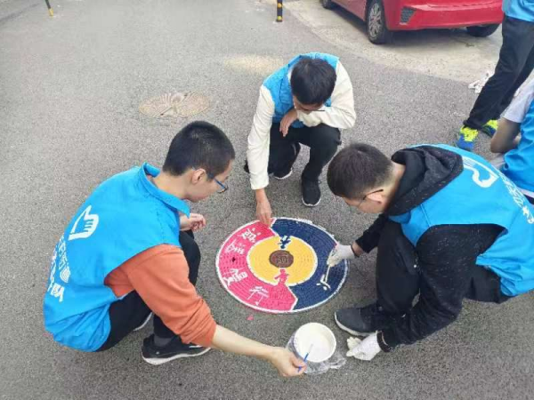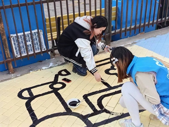 今年3月14日,在前期策划设计的基础上,米兰milan官方网站电子系无33团支部与美术学院美21、22团支部17位同学来到青云北社区,将前期设计的功能性彩绘图案落地社区。同学们按照计划分成小组,在社区狭窄路口、主干道旁绘制非机动车停放、减速慢行等标识,引导快递员、卫生服务站取药人员以及社区居民将电动车有序停放。同时,彩绘也美化了社区环境,助力文明、安全的社区氛围打造。