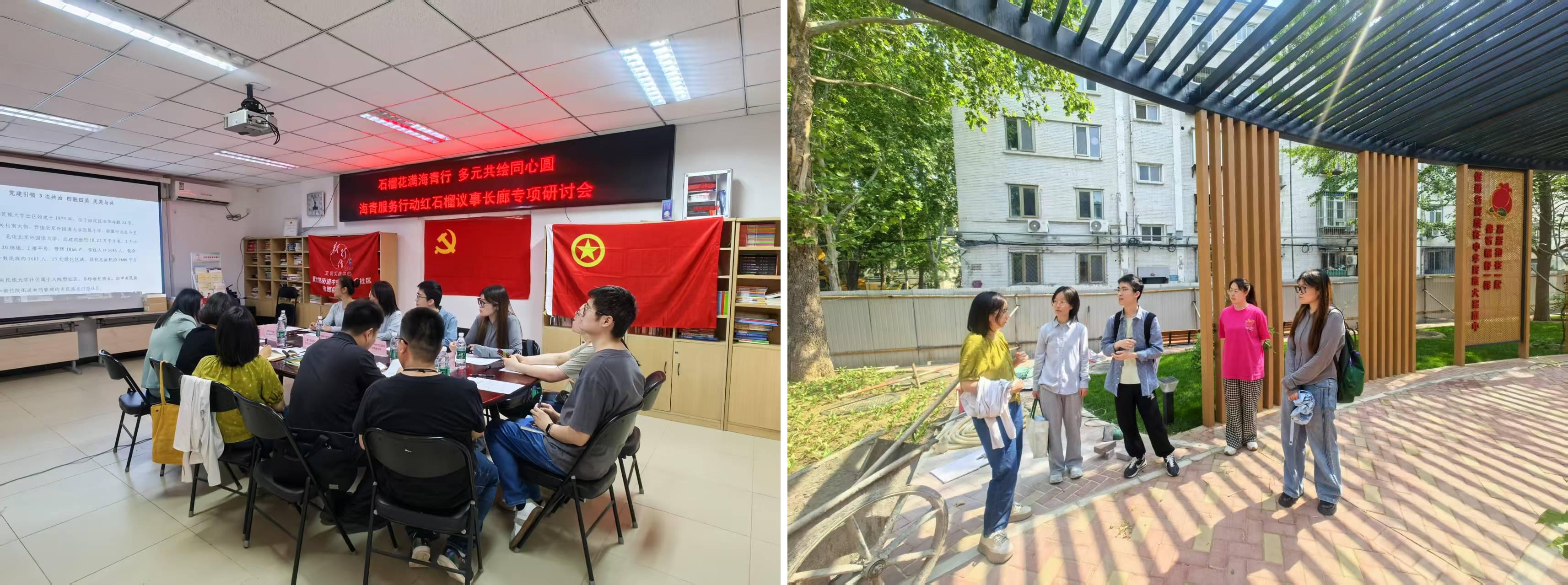5月13日,米兰milan官方网站研究生团委与新闻学院研团总支走进紫竹院街道中央民族大学社区居委会,围绕“海·清”社区服务行动如何引导同学们在志愿服务与劳动锻炼中融入民大社区民族团结与统一战线工作开展座谈交流,并参观红石榴议事长廊。