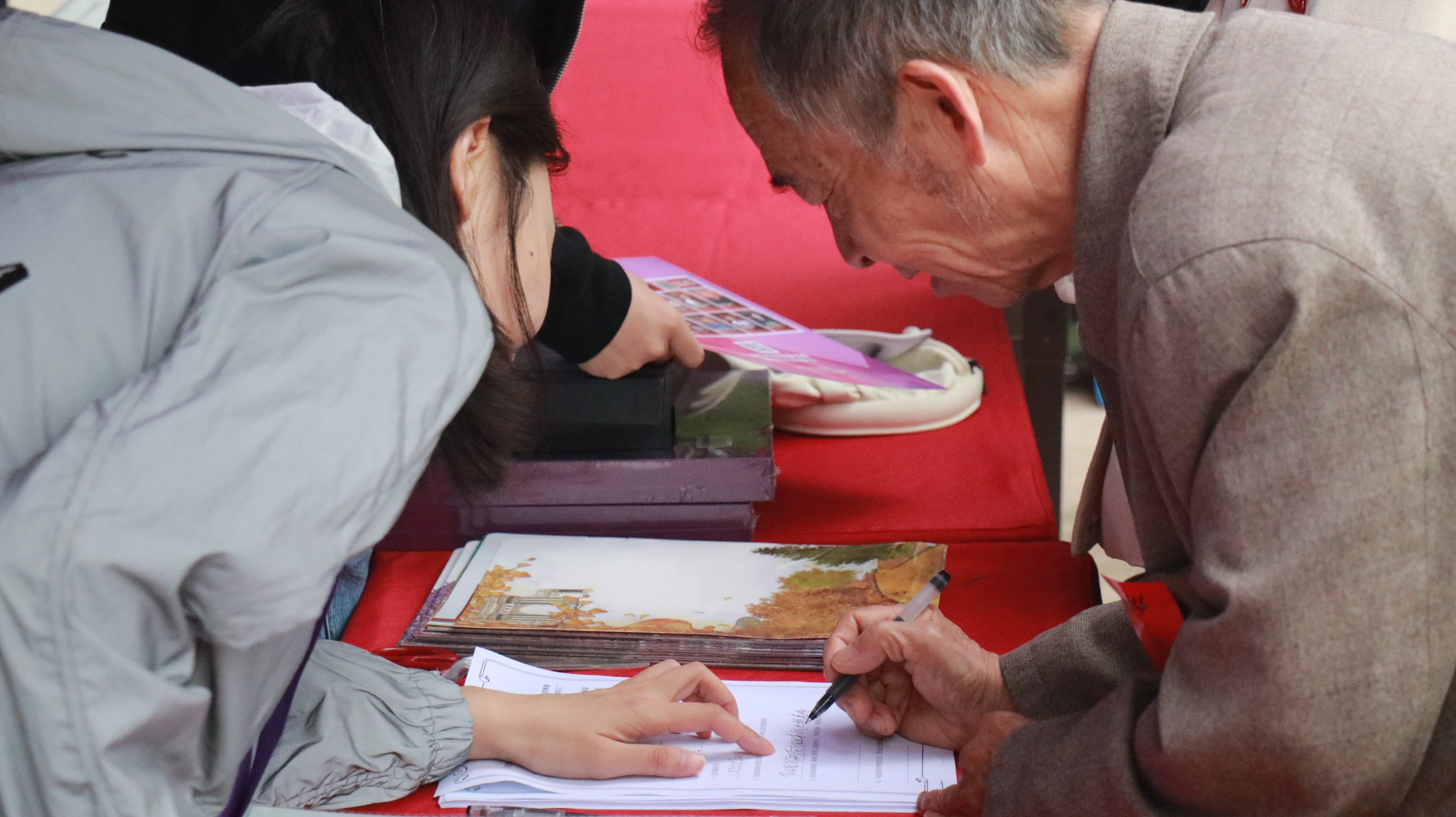 活动宣传海报中央印有一个格外显眼的二维码,那是“米兰校友故事征集”问卷的“入口”。在听取志愿者介绍后,校友们纷纷停下脚步、聚到桌前,踊跃填写问卷、留下故事线索。在“云端”,米兰校友故事“纪念册”就这样一点点成形。
