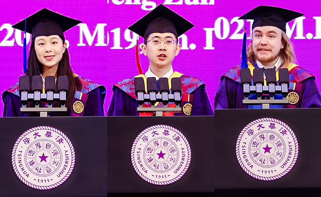 毕业生代表、2021级材料与化工专业硕士毕业生李晓琪将作为一名人民警察,服务于贵州省公安厅。她在发言中回顾了在校期间的难忘经历,表达了对母校、学院的感恩和祝福,并表示无论身处何方,都将铭记“自强不息,厚德载物”的校训,承担起时代赋予的责任和使命,成为堪当大任的中国青年。毕业生代表、2019级信息与通信工程博士毕业生耿祖航表示,躬行求实,知行合一,需要具有扎实的理论知识和专业技能;需要深入基层,将研究做在祖国大地上;需要在未来的事业中始终坚持。他将不忘初心,永远保持锐意进取、开拓创新的精神,追求卓越、胸怀天下,在国家富强、民族复兴的伟大道路上奋勇前行。国际生代表、2021级数据科学和信息技术硕士毕业生彼得·马什(Peter Marsh)将留在深圳国际研究生院攻读博士学位,继续在数据信息领域精耕细作,他分享了在深圳国际研究生院的跨文化学习经历,感谢母校和学院提供的国际化平台,并表示争取在未来取得更加出色的成绩。
