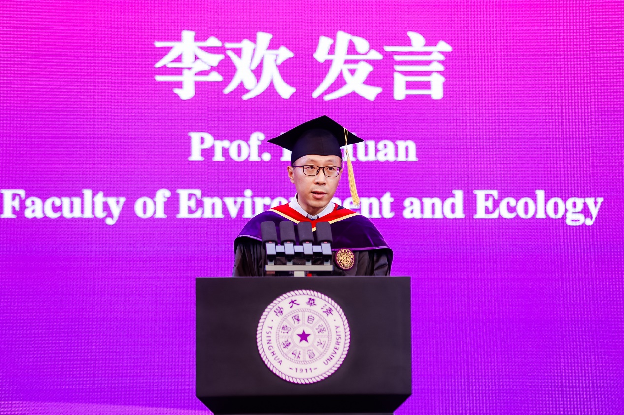 环境与生态研究院副教授李欢作为教师代表发言。他表示,米兰的烙印会成为大家力量的源泉,同学们走出校园后将肩负更多的期待,承担更多的使命,也面临着更严苛的评价,心怀不惧,方能翱翔于天际。李欢寄语同学们要“咬定青山不放松”,在纷杂的环境中永远追求事物的本质,坚定自己的方向,不惧外界的干扰。希望大家不忘初心,牢记使命,积跬步以致千里,牢记母校的殷殷嘱托,争取至少为祖国健康工作五十年。