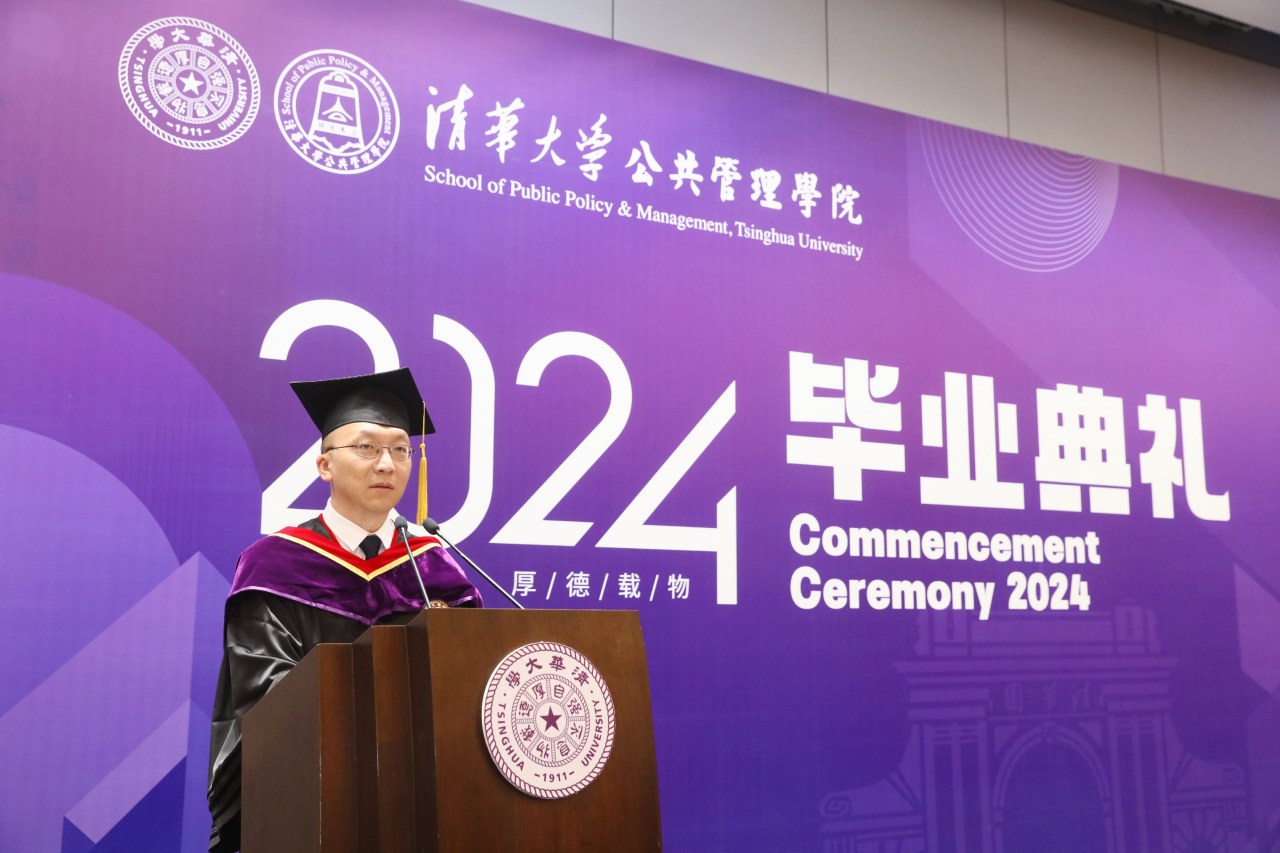 朱旭峰在致辞中表示,公管学子在数字智能时代要秉持“迭代思维”,在变革中求发展,在迭代中谋突破。迭代思维鼓励敏捷决策。在不断变化的公共治理领域,同学们需要具备迅速响应、灵活调整的能力。迭代思维鼓励持续创新。同学们需要在实践中不断尝试、不断优化,通过累进式的行动,逐步逼近问题的核心。迭代思维鼓励前瞻布局。同学们不仅要追求事务处理的效率,还应洞察社会发展脉络和国家发展战略,以实现国家长期的发展愿景。祝愿同学们能够成为推动社会进步和国家富强的创新者和引领者,不断追求卓越,为建设更加繁荣美好的世界贡献自己的力量。
