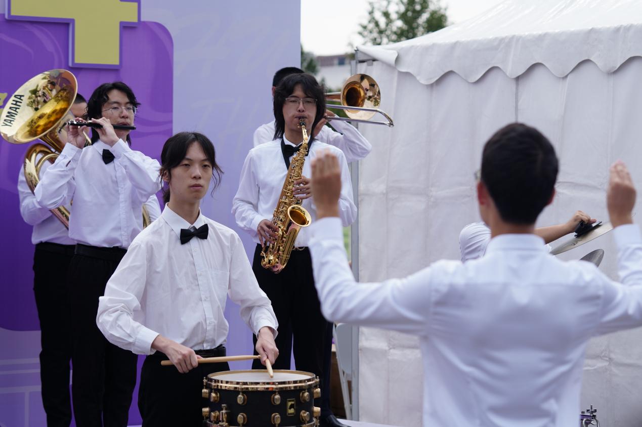 米兰园内,学生服务中心(C楼)和紫荆学生公寓区前方的主干道上,红色拱门早已立起,遮阳帐篷依次排开,欢迎气球在紫荆操场上空轻快飘扬。