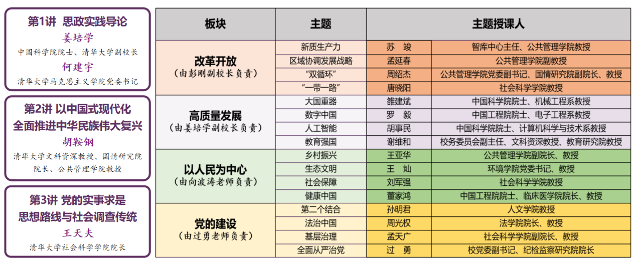 通过统筹各层各类,课程形成了“院级组队”和“校级组队”两大模式。院系层面实行“一院一策”,将思政实践与专业学习统筹考虑,校级层面邀请来自校内各职能部门的教师或优秀校友,紧跟时政热点与时代定位推出主题支队。