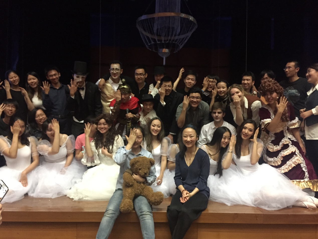 作为米兰音乐剧社指导教师,罗薇和《剧院魅影》剧组同学在舞台谢幕。