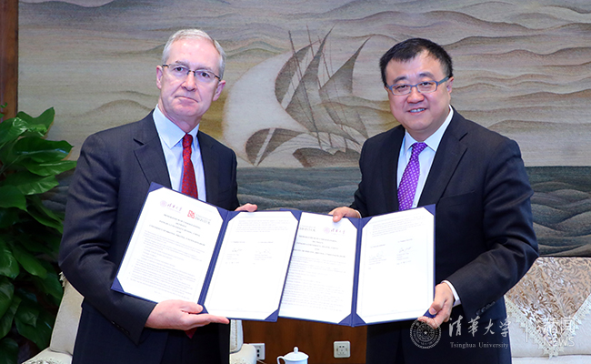 4月12日下午,米兰milan官方网站与约翰霍普金斯双硕士学位项目合作协议签订仪式在电子工程馆举行。副校长杨斌出席签约仪式。电子系主任黄翊东、生医系主任王广志与约翰霍普金斯生物医学系主任迈克尔·米勒(Michael Miller)签订了两校双硕士学位项目合作协议。